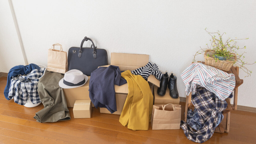 まずは「シーズンオフの衣類」や「来客用食器」など、使用頻度の低いものから箱詰めを始めます。