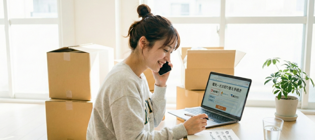 電気・ガス・水道・インターネットの解約と開始手続きを行います。特にガスは開栓に立ち会いが必要なため、早めの予約が必要です,。