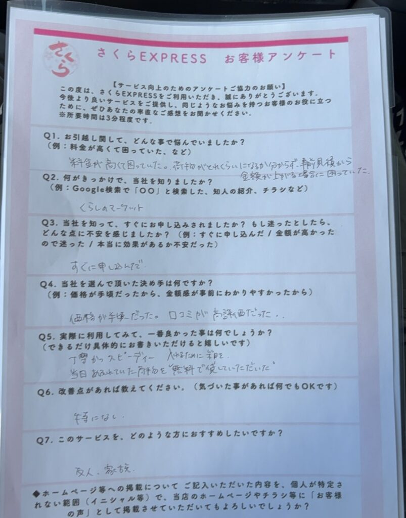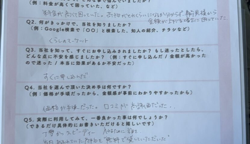A 料金が高くて困っていた。 荷物がどれくらいになるかわからず、事前見積もりから金額が上がる場合に困っていた。