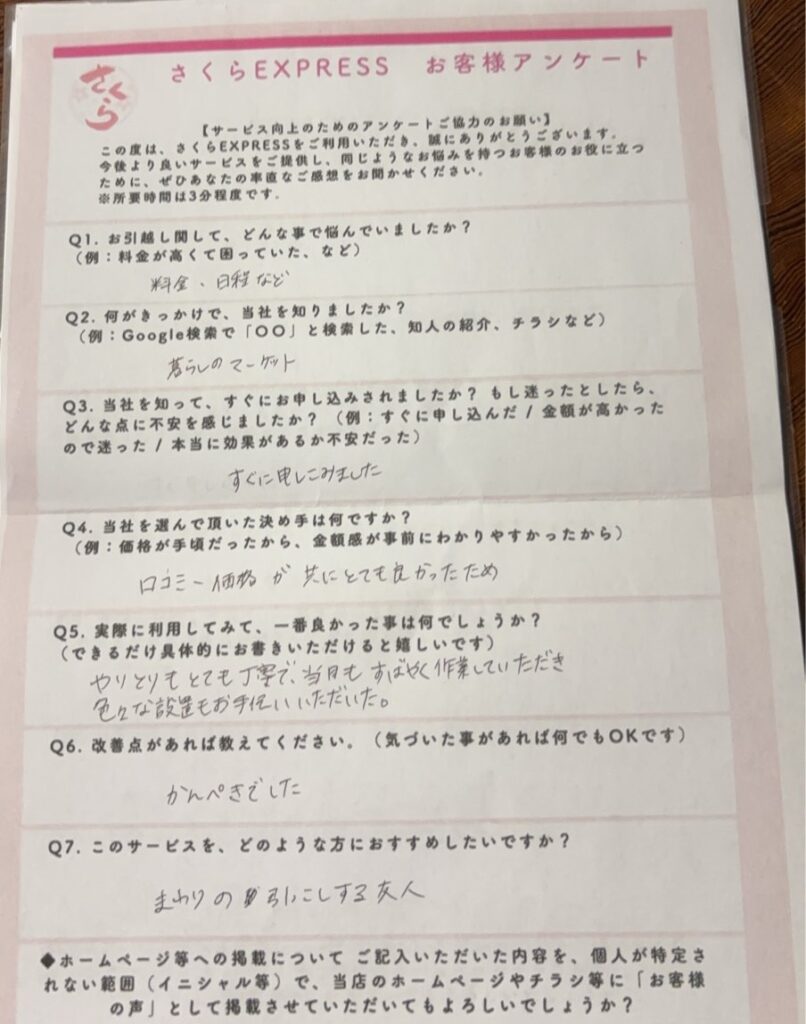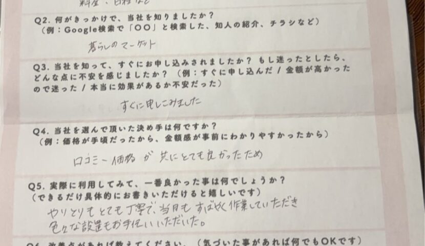 A やり取りもとても丁寧で当月も素早く作業していただき、色々な設置もお手伝いいただいた。