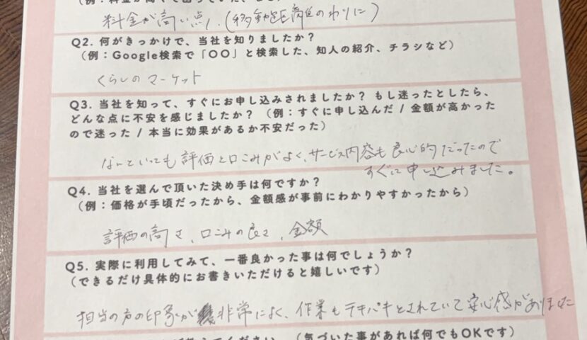 A 担当の方の印象が非常によく、作業もテキパキとされていて、安心感があった