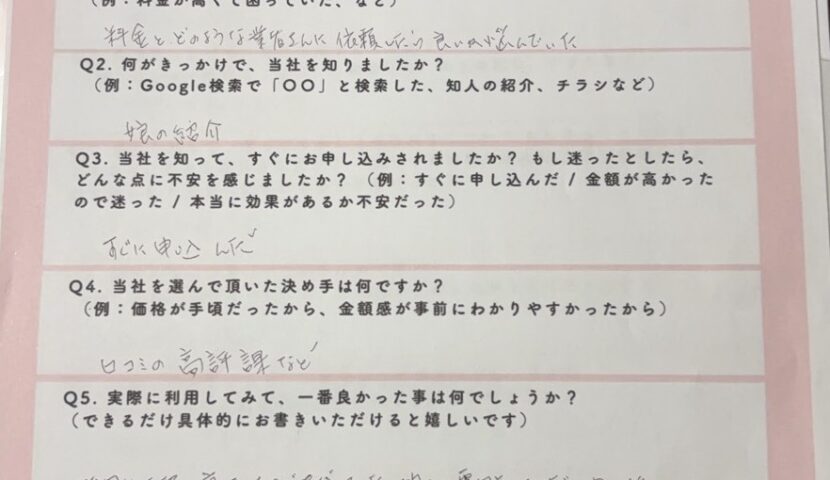 A 料金とどのような業者さんに依頼したらいいのか悩んでいた